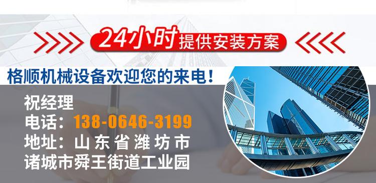 山東格順機(jī)械有限公司 郵編:262200 公司郵箱:768246639@qq.com 網(wǎng)址:geshunjixie.com 地址:山東省濰坊市諸城市舜王工業(yè)園 電話:138-0646-3199